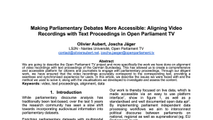 Video recordings of parliamentary debates offer great untapped potential for digital democracy. They are more tangible than text documents or voting lists and an easily accessible “window” to the discussions, […]